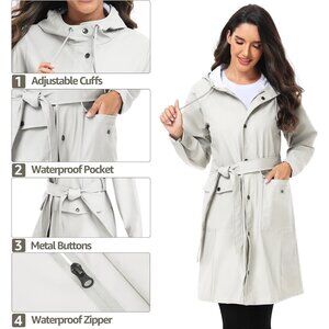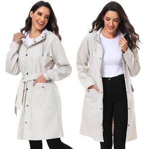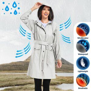 Women’s Tc-beige Waterproof Rain Jackets Hooded Long & Raincoat Windbreaker
