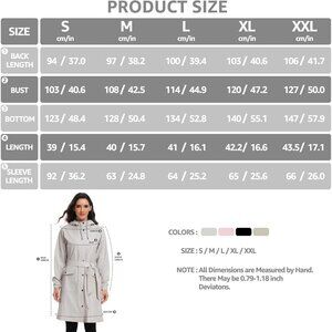 【Material】:This waterproof jacket is cut from UNIQUEBELLA’ signature PU fabric and features ultrasonically welded seams. The finish is lightweight with a soft feel and elegant drape.