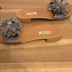 Beautiful leather sandals with flower. Bronze color. Worn for one season. Size 5 1/2 which is an 8 for Paul Green.