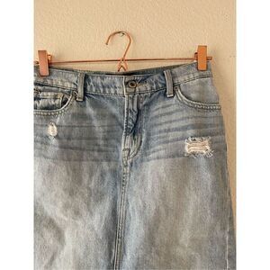 Has the distressed style on the front. Size 2. Has the back slit. No flaws.
