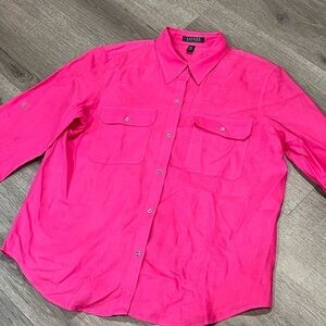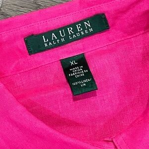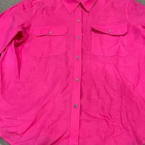 Women’s XL 100% Linen Pink Button Front Beach Vacation Lightweight Classic Shirt