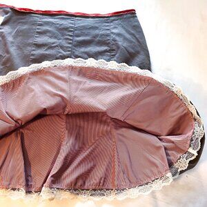 Details: Delicate lace trim underskirt petticoat, small brand tag detail, rear embroidered detail, raw hem and ribbon trim at waist