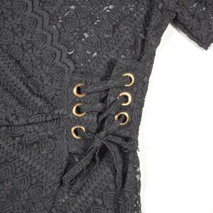 LUODING Gothic Black Lace Wrap Top w/ Grommet Corset Detail & Asymmetrical Hem