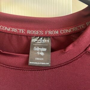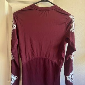 Maroon long sleeve compression shirt with Death Note graphics. Features white designs on sleeves and front. Never worn.