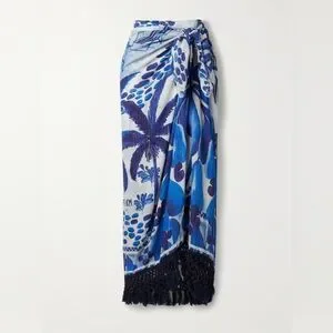 FARM RIO Fringed Printed Metallic Voile Pareo sarong