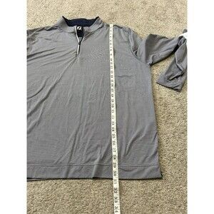 Elevate your golf game and casual wear with the FootJoy 1/4 Zip Pullover. Designed with the discerning gentleman in mind, this navy long-sleeved top is tailored for a comfortable, regular fit. The men's size 2XL ensures ample room for ease of movement, making it an ideal choice for both on and off the course.