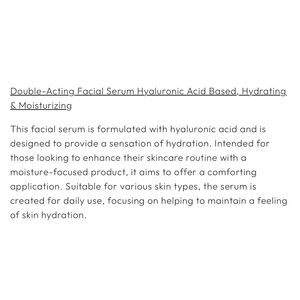 Predire Paris Double-Acting Facial Serum Hyaluronic Based Hydrating & Moisture, new without the box, never been used or opened. I took this out of the Predire Paris Hyaluronic Acid Collection which is sealed in a box, which is why there is no case. ZzzThis serum is meant to hydrate and moisturize, while leaving skin smoother and healthier. It is rejuvenating, renewing, and protects against premature aging. Retails for $400.00. Please see photos for more details and ingredients. Offers are welcome.
