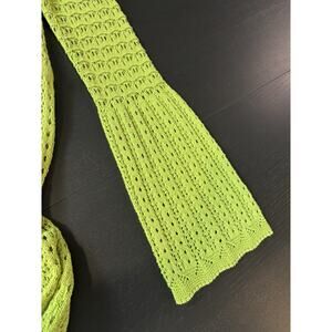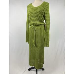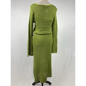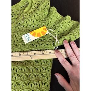 C&C California Knit Crochet Dress Green Size Medium Lined Bell Sleeves