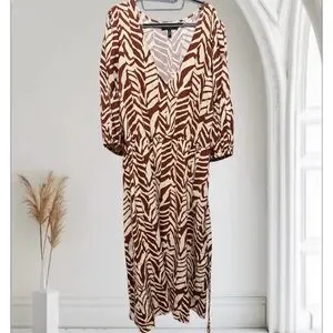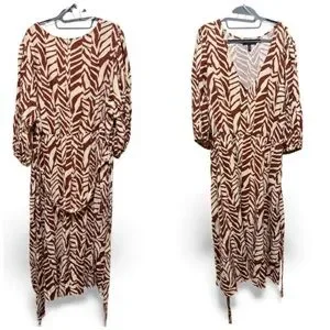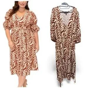 Eloquii Brown and Cream Linen Zebra Print Midi Dress Size 24