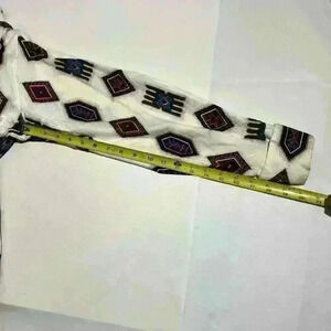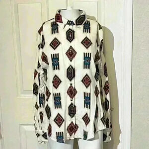 Features: Long Sleeves, Geometric Pattern, Collared, Button Front, Aztec Print, Colorful