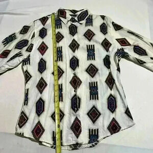 Vintage Wrangler Western Wear Aztec Colorful Geometric Button Up Shirt Womens Size Large