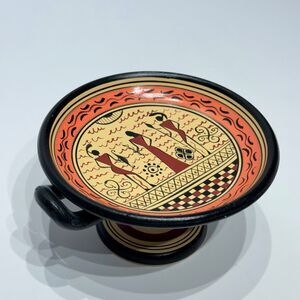 Vintage Hand Made Savas Ceramics Rhodes Small Pedestal Bowl Greek Figures (A9)