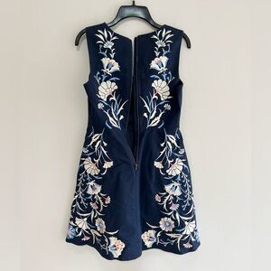 - Color: Blue Motif = Navy Blue with off white, blue and pink embroidered flowers