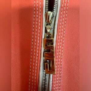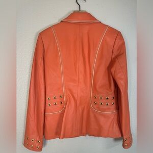 St John Sport by Marie Gray Orange Tangerine Leather Full Zip Jacket with grommets Medium