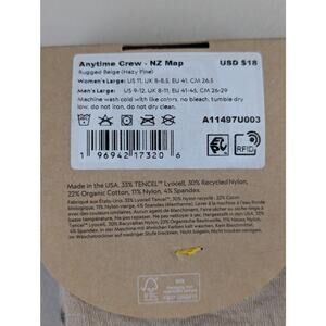 NWT allbirds Anytime Crew Socks NZ Map Beige Rugged Mens Large Hiking Gorpcore