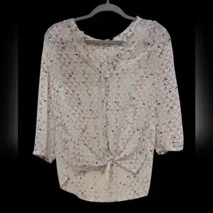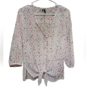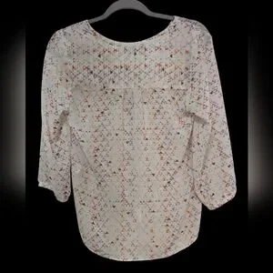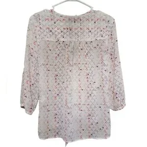 Maurices Women's Blouse Size Small White with Colorful Triangle Pattern