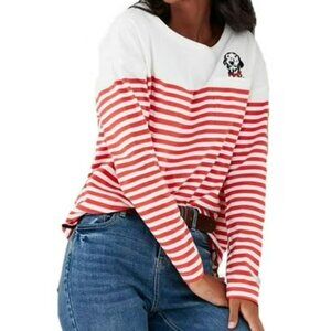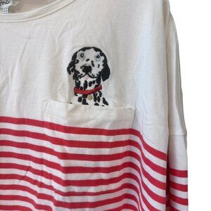 Joules Marina Red Striped Dalmation Dog Embroidered Cotton Top Women's size 22