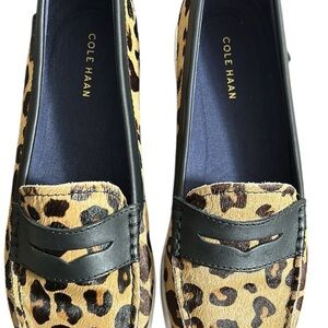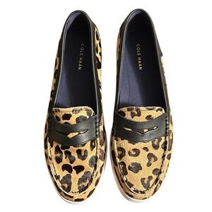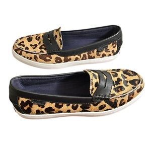 Cole Haan Size 9B Nantucket Leopard Print Black Leather Calf Hair Loafers