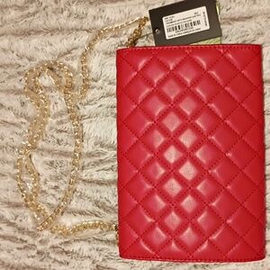 NWT Bagdley Mischka Stylish red quilted crossbody with elegant gold chain and gold hardware.Perfect for any outing... includes 6 interior card slots with a coin zipper slot also. Twist button closure.