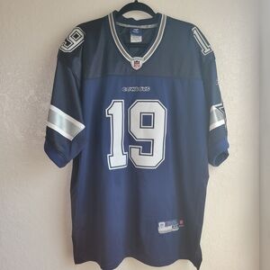 Navy blue Reebok NFL jersey with white accents. Features number 19.