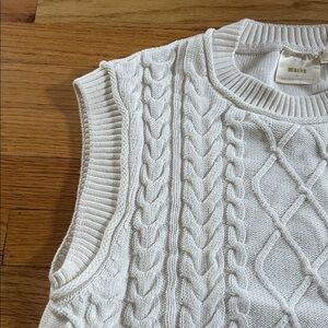 Anthropologie Maeve Cable Knit Vest in white. Size medium. Only sign of wear is small pull on back, shown.