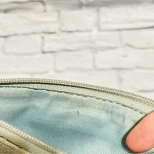 Coach Cream With Signature C’s in Metallic Silver, Silver Hardware Grey Leather.