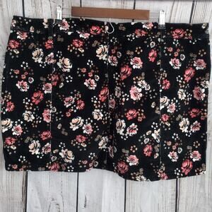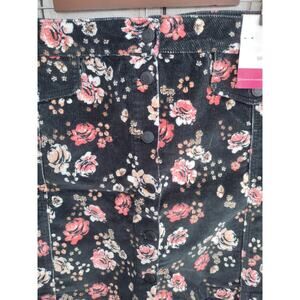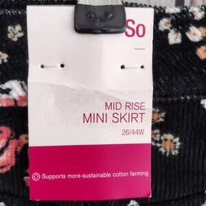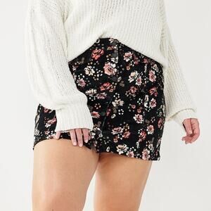 SO Kohls NEW Black Floral Button-Front Corduroy Mini Skirt Stretchy 26 Plus