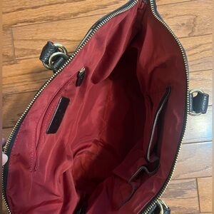Anne Klein Soft Black Pebble Texture Leather shoulder bag, purse great condition zipper closure with lots of space red interior 17in width and 10in high