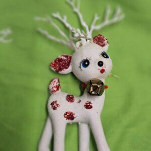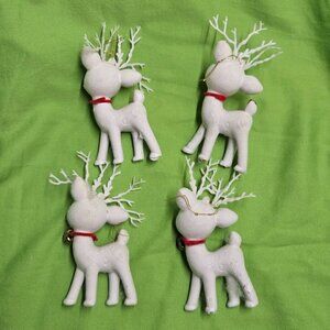 Vintage Christmas Tree Ornaments Flocked Reindeer, White & Red Lot of 4
