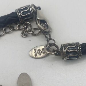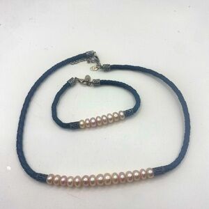This elegant jewelry set features a stunning combination of lustrous pearls and a sleek black braided design. Perfect for adding a touch of sophistication to any outfit.