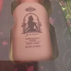 Wicked - Luxurious 6 piece bath set with gold and pink design. Perfect for a relaxing experience. Features the scents of Spellbound Peony, Enchanted Rose, Forbidden Sage, and Magic Eucalyptus. Bath gels are 3.38 oz and lotions are 1oz.