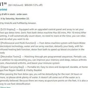 【LCD Display】— Equipped with an upgraded control panel and array to set your foot spa detox time. (ionic foot bath detox machine Max 60 mins, Min 10 mins) After setting, it will automatically count down, no need to stare at the time, you can relax and do what you want to do