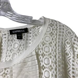 SIze large Express long sleeve ruffle and lace top in excellent used condition. Nylon and polyester. 42 inch bust. 23.5 inch length.