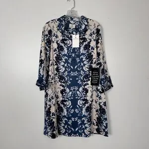 It's hard to find a dress that looks good no matter your stage of life, but this easy dress does it all. Featuring three-quarter length sleeves, a stand collar, V-neckline, and an A-line shift fit, this mini will carry you from work to happy hour with ease.