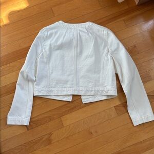 Fun cropped white denim jacket (lady jacket style). New with tags (and extra button!). From smoke free pet free home.