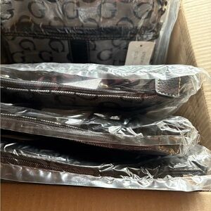 A brand new Crossbody with the long strap and the matching wallet both with gold hardware and stunning G Accent details. similar retail over $150 on Amazon. They are dark, gray and silver gorgeous perfect Christmas gift for anyone.