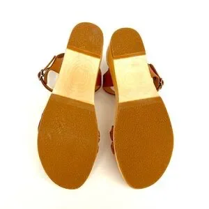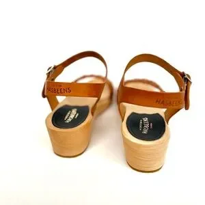 $350 NEW Swedish Hasbeens Tanja Brown Low Wood Leather Sandals Womens US 6