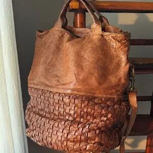 Discover the elegance of this woven leather tote, perfect for any occasion. Crafted with premium materials for a sophisticated look. Used one season. Beautiful vintage look