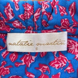 Warm block print quilted jacket (with pockets). Also comes with a tie belt (but no belt loops on the jacket 🤷♀️). In very good used condition. From a smoke free pet free home.