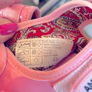 Anthony Wang pink platform wedge buckle sandals patent leather trim size 6.5