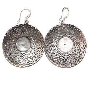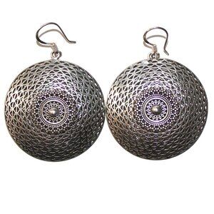 Sterling Silver Open Work Lacey Disc Earrings 14 Grams