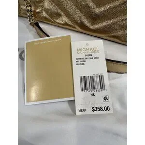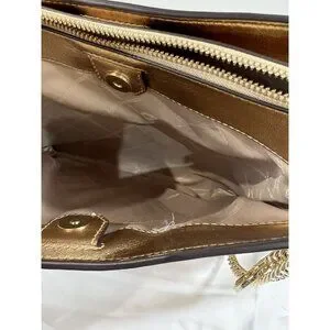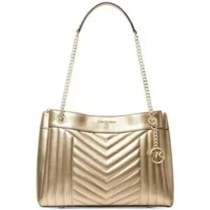 Michael Michael Kors Susan Metallic Medium Shoulder Bag Pale Gold New Chain