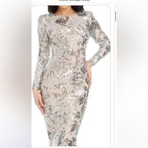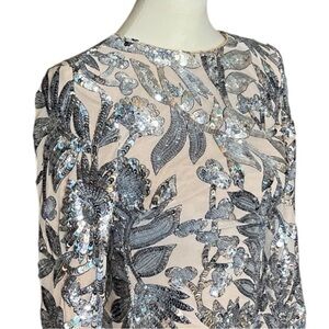 Shine in this elegant silver over nude dress, perfect for any special occasion. The intricate design adds a touch of glamour to your wardrobe. Worn once for 4 hrs - smoke and pet free home