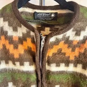 Vintage 1960s Kurt Cobain Grunge Style Aztec Zip Up Alpaca Cardigan Sweater Sz M