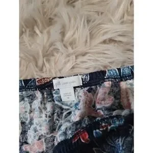 J Jill Top Womens Size M Blue Floral Love Linen Sarasa Ruffled Tropical Like new condition Bust/Chest 17.5" Overall Length 26"