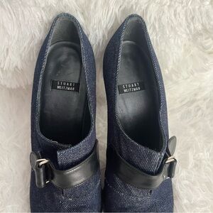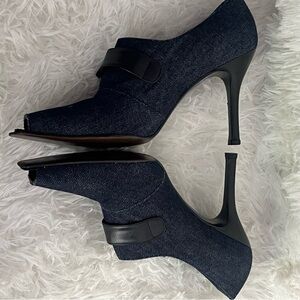 Stuart Weitzmen Peep Toe Denim Upper Leather Boots 8.5