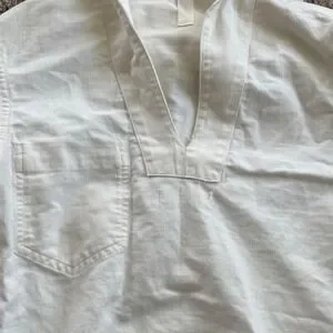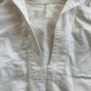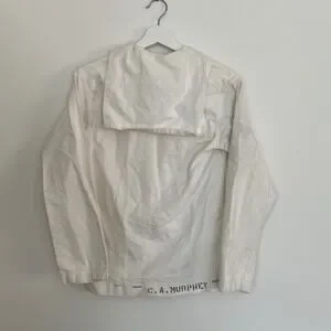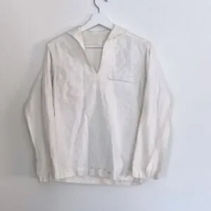Vintage US NAVY Military Sailor White Long Sleeve Uniform Shirt Stencil Print