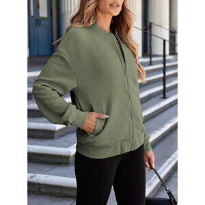 Women's Bomber Jacket Lightweight Casual Fall Coat Zip Up Pockets