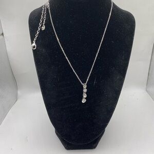 This exquisite Swarovski necklace showcases a delicate silver chain adorned with a vertical line of sparkling crystals. The elegant design offers a timeless appeal, making it a perfect accessory for any occasion.