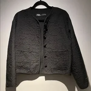Chic black jacket with textured fabric design. Features button closure and front pockets. New never worn without tags NWOT.